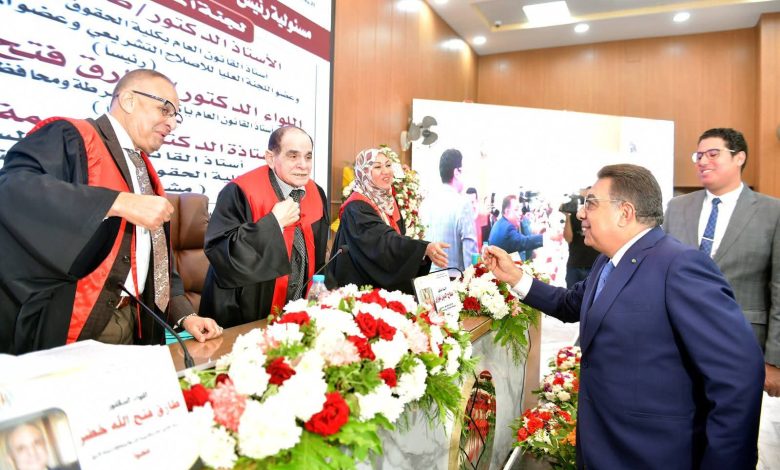 شهد اللواء طارق مرزوق محافظ الدقهلية بحضور الدكتور شريف خاطر رئيس جامعة المنصورة والدكتور أحمد العدل نائب المحافظ مناقشة رسالة دكتوراه بكلية حقوق المنصورة تحت عنوان “مسؤولية رئيس الدولة والوزراء في النظم الدستورية المعاصرة”، المقدمة من الباحث أحمد سامي محمد عثمان الجندي .