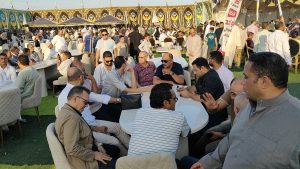 أقيمت الإحتفالية الكبيرة بالمنطقة الصناعية بحوش عيسى ..وتوافدت الحشود على مأدبة الغداء التى امتدت من الظهر إلى منتصف الليل فى مشهد عكس المحبة الجارفة لواحد من أبناء حوس عيسى المرتبطين بأهلها بصلات قربى ووشائج محبة انعكست فى الحضور الطاغى والذى لم تشهده أى احتفالية شعبية أو رسمية بهذا الشكل المتفرد.