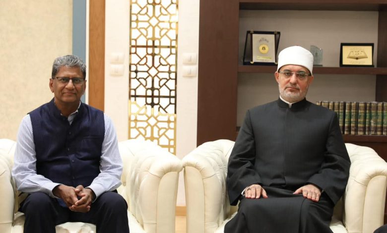 ورحب فضيلة المفتي بالسفير الهندي، معبرًا عن تقديره للعلاقات الممتدة التي تربط بين مصر والهند، ومشيدًا بما تمثله الهند من قيمة حضارية وإنسانية ذات أثر عميق في التاريخ الإنساني، وما لها من إسهامات ملموسة في مجالات الفكر والثقافة.
