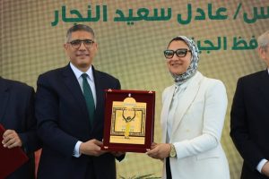 من ناحية أخرى، قام المهندس عادل النجار بإهداء درع المحافظة للسيدة حنان مجدي نائب المحافظ؛ تقديرًا لمشاركتها في النسخة الثامنة من المهرجان ، والذي أعقبه تفقدها أجنحة منتجات المحافظة المشاركة بالمعرض المقام على هامش المهرجان، مشيدةً بجودة وتنوع المعروضات، وإتاحة الفرصة من خلال تلك المعارض لتبادل الخبرات والشراكات وفتح مجالات تسويقية و تنافسية هامة.