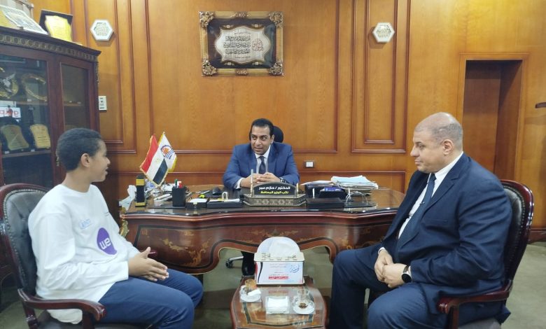كرم الدكتور حازم عمر نائب محافظ قنا، الطالب مروان تامر محمد، بالصف الثالث الإعدادي بمدرسة الحديثة بقنا، الحاصل على المركز الثاني على مستوى الجمهورية، ضمن بعثة المنتخب المصري للذكاء الاصطناعي والروبوت، تحت رعاية وزارة الاتصالات.