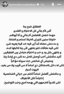 في المقابل، لم يُصدر كريم محمود عبد العزيز أي تعليق إضافي بعد منشوره الأول، وظلّ صامتًا تمامًا، ما زاد من تأجيج التساؤلات حول طبيعة العلاقة بين الزوجين، وسبب اللجوء إلى وسيلة غير رسمية لإنهاء زواج استمر 14 عامًا.