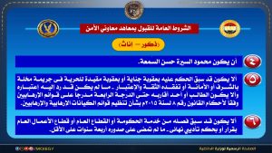 حددت وزارة الداخلية مجموعة من الشروط الواجب توافرها في المتقدمين، وجاءت على النحو التالي: