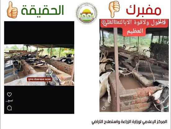 ونفت الوزارة في بيان رسمي، صحة ما ورد في الفيديو جملة وتفصيلاً، مشيرة إلى أن المقطع المتداول مزيف ومنسوب كذبًا إلى إحدى المزارع في مصر، موضحة أن التحقيقات والمتابعة الميدانية أثبتت أن الفيديو يعود إلى مزرعة في دولة باكستان، حيث شهدت تلك المنطقة حالة تسمم جماعي للماشية عقب الفيضانات التي تسببت في اختلاط مواد سامة بالأعلاف والمياه، وهو ما لا يمت بصلة للوضع الصحي للماشية في مصر.
