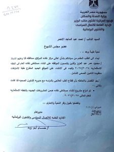 وأشار “الأحمر” إلى أن إدراج مشروع المستشفى ضمن الخطة الاستثمارية القادمة سيُحدث نقلة نوعية في الخدمات الصحية بالمركز، مما سيسهم في تقليص معاناة المواطنين ويُيسر عليهم الحصول على الرعاية الطبية المناسبة في أقرب وقت.