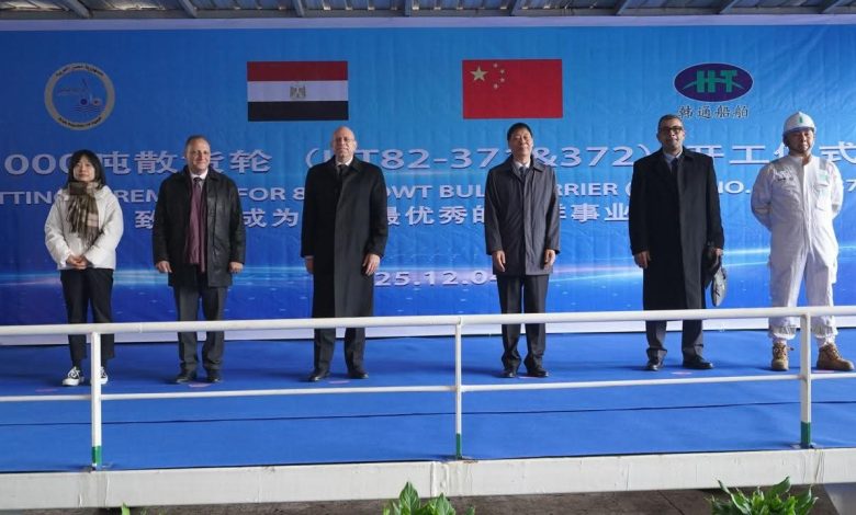 إحتفلت وزارة النقل ممثلة في شركة الملاحة الوطنية بإنجاز هام في مسيرة تحديث الأسطول التجاري المصري، من خلال مراسم تقطيع صلب البدن لبدء بناء سفينتي صب جاف عملاقتين من طراز كامسارماكس حمولة 82,000 طن ساكن في ترسانة جيانجسو هانتونج للصناعات الثقيلة بجمهورية الصين الشعبية، وهي إحدي كبرى الترسانات العالمية.