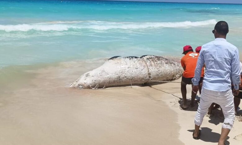 الأدلة العلمية ترجح نفوقه بأعماق البحر بإحدى دول الجوار..والتيارات البحرية ألقت به على الشواطىء المصرية