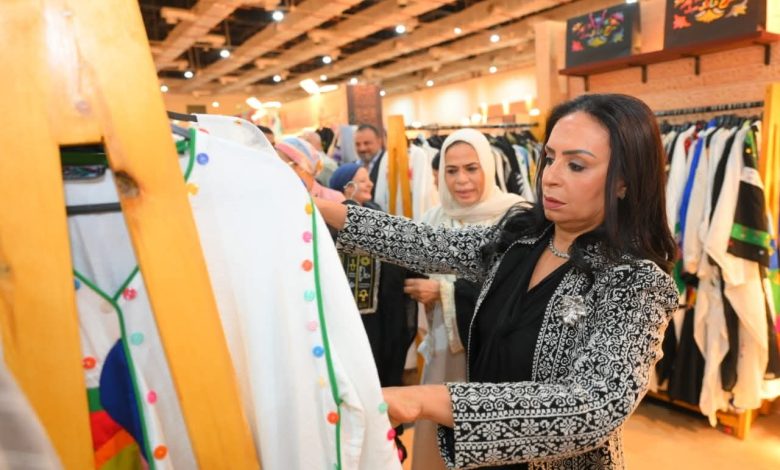 وزيرة التضامن الإجتماعي تشيد بمعروضات جناح صندوق “دعم الصناعات الريفية والبيئية بمعرض تراثنا