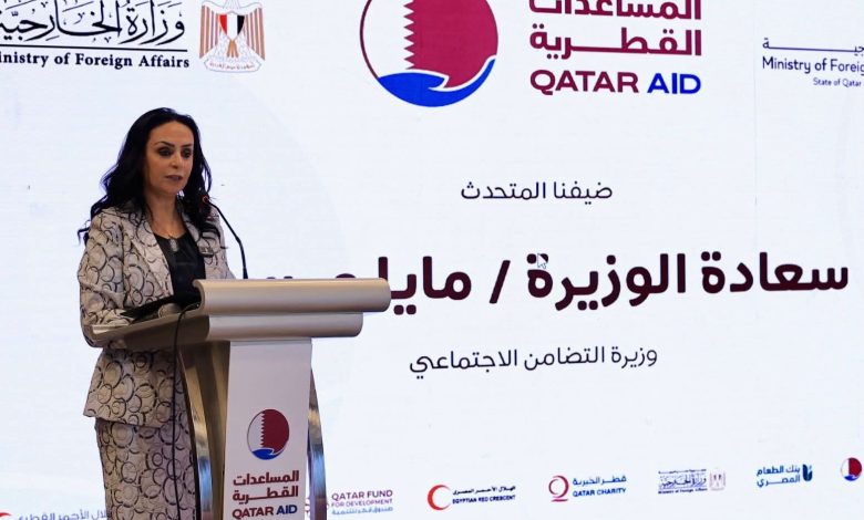 وزيرة التضامن تشهد احتفالية التعاون المصري القطري لدعم الاحتياجات الإنسانية بقطاع غزة
