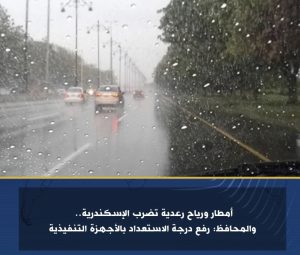 شهدت محافظة الإسكندرية فجر اليوم حالة من عدم الاستقرار في الأحوال الجوية، حيث هطلت أمطار رعدية وهبت رياح متفاوتة الشدة.. فيما وجه المحافظ أحمد خالد حسن سعيد، برفع درجة الاستعداد في جميع الأجهزة التنفيذية بالمحافظة.