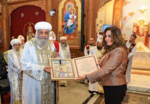 وزيرة التنمية المحلية تشارك فى تدشين البابا تواضروس الثاني لكنيسة السيدة العذراء بمدينتى