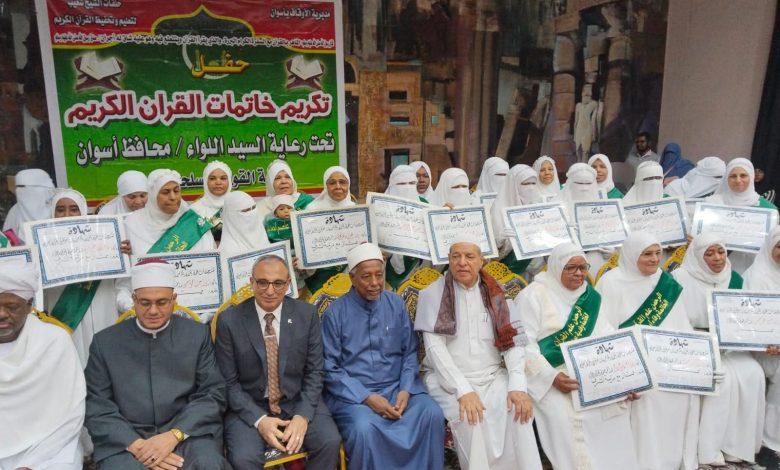 شهد اللواء رماح السيد، السكرتير العام المساعد لمحافظة أسوان، فعاليات الحفل السنوي لتخرج الدفعة الـ29 من خاتمات القرآن الكريم، والذي شمل تكريم 41 سيدة، ليصل إجمالي المخرجات بحلقات الشيخ شعيب أبو سلامة إلى 619 خاتمة.