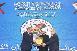 شهد الدكتور أسامة الأزهرى وزير الأوقاف الاحتفالية الكبرى التي نظمها نادي مستشاري النيابة الإدارية، بمقر مجمع النيابات بالتجمع الخامس لتكريم النابغين من حفظة كتاب الله عز وجل، بحضور المستشار محمد خليل الشناوي – رئيس هيئة النيابة الإدارية، والمستشار عبد الرؤوف موسى عبد الرؤوف رئيس نادي مستشاري النيابة الإدارية، والدكتور محمد لطفي رئيس الإذاعة والتلفزيون، والأستاذ إسماعيل دويدار رئيس إذاعة القرآن الكريم، والدكتور محمد رجب خليفة رئيس الإدارة المركزية لشئون الدعوة، والدكتور أسامة فخري الجندي رئيس الإدارة المركزية لشئون المساجد والقرآن الكريم، والدكتور علي عمر الفاروق نائبًا عن فضيلة مفتي الجمهورية، والدكتور محمود الهواري الأمين العام المساعد بمجمع البحوث الإسلامية.