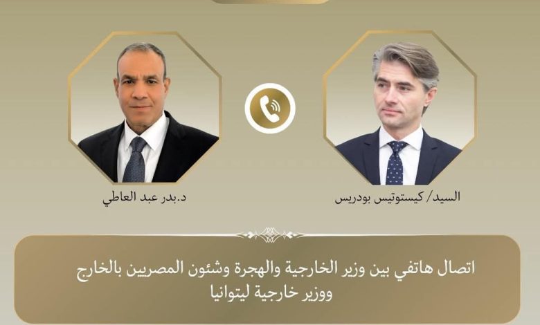 بحث د. بدر عبد العاطي وزير الخارجية والهجرة ونظيره الليتواني “كيستوتيس بودريس” اليوم الخميس في اتصال هاتفي تطورات القضية الفلسطينية.