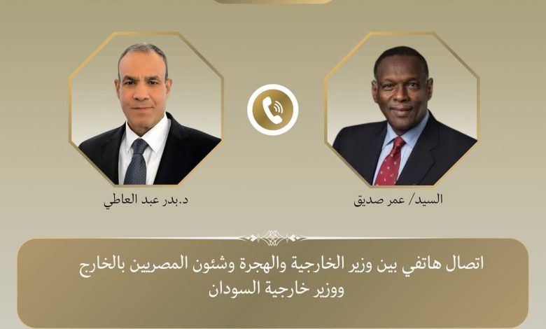 هنأ د. بدر عبد العاطى وزير الخارجية والهجرة خلال اتصال هاتفى عمر صديق وزير خارجية السودان الجديد يوم الخميس على توليه مهام منصبه الجديد وبحث العلاقات الثنائية بين البلدين الشقيقين.