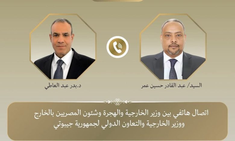 بحث د. بدر عبد العاطي وزير الخارجية والهجرة خلال اتصال هاتفى اليوم الأربعاء مع عبد القادر حسين عمر، وزير الخارجية والتعاون الدولي الجديد لجمهورية جيبوتي الشقيقة تبادل الرؤى والتقديرات حول سبل تعزيز التنسيق بين البلدين في إطار دعم الاستقرار والتنمية في منطقة القرن الأفريقي