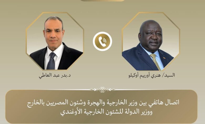 أجرى د. بدر عبد العاطي وزير الخارجية والهجرة، اتصالًا هاتفيًا مع “هنري أورييم أوكيلو” وزير الدولة للشئون الخارجية في أوغندا، وذلك في إطار التنسيق والتشاور المستمر بين البلدين الشقيقين حول مختلف القضايا ذات الاهتمام المشترك.