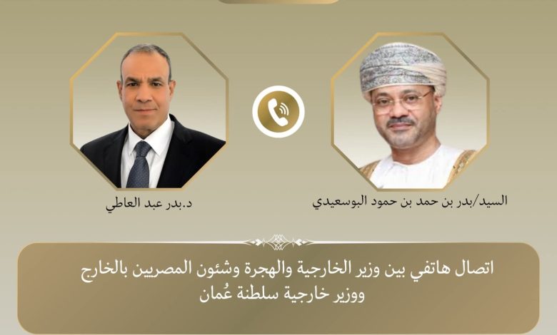 وصرح السفير تميم خلاف المتحدث الرسمي باسم وزارة الخارجية بأن الوزير عبدالعاطي أكد خلال الاتصال على خصوصية العلاقات بين مصر وسلطنة عُمان، وما تقوم عليه من روابط أخوية راسخة وتوافق في الرؤى إزاء مختلف القضايا الإقليمية والدولية، مشيراً إلى الحرص المتبادل على الارتقاء بمستوى التعاون الثنائي والبناء على ما تحقق من تطور ملموس خلال الفترة الماضية.