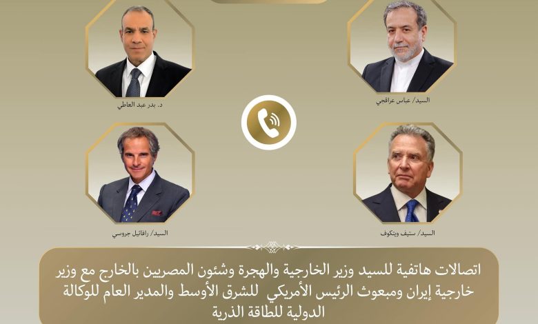 بتوجيهات من السيد رئيس الجمهورية لتكثيف الاتصالات لخفض التصعيد وحدة التوتر فى المنطقة، أجرى د. بدر عبد العاطى وزير الخارجية والهجرة مجموعة من الاتصالات شملت كل من السيد عباس عراقجى وزير الخارجية الإيرانى، والسيد ستيف ويتكوف مبعوث الرئيس الامريكى الخاص للشرق الأوسط، والسيد رافائيل جروسى المدير العام للوكالة الدولية للطاقة الذرية.