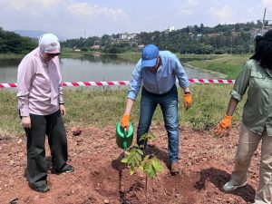 وخلال المشاركة، قام الدكتور هاني سويلم السفيرة حنان شاهين، وعدد من السادة أعضاء الوفد المصرى بزراعة عدد من الأشجار في لفتة رمزية تعكس و المشترك بحماية البيئة وتعزيز الحلول القائمة على الطبيعة، وبما يؤكد على عمق العلاقات المصرية – الرواندية وحرص الجانبين على تعزيز التعاون الإيجابي وتبادل الخبرات في المجالات ذات الاهتمام المشترك .