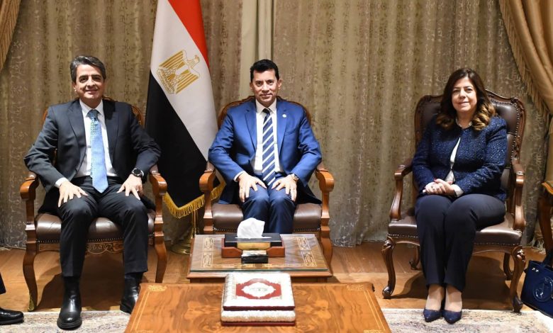 وزير الرياضة يبحث مع نظيريه اللبنانى والأردنى سبل تعزيز التعاون المشترك