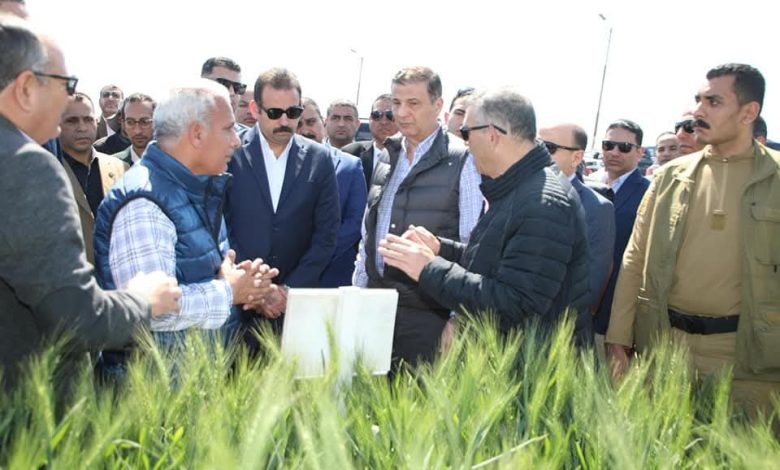 وفي سياق متصل تم أيضا تفقد أحد حقول التجارب لزراعة محصول القمح، في إطار البرنامج القومي للنهوض بإنتاجية محصول القمح، والذي ينفذه مركز البحوث الزراعية، ممثلا في معهد بحوث المحاصيل الحقلية، حيث تم الوقوف على التجارب الخاصة بإستنباط أصناف جديدة من محصول القمح، عالية الانتاجية، ومقاومة للامراض، والملائمة للتغيرات المناخية المختلفة، وقليلة استهلاك المياه، والبالغ عددها ٥ أصناف جديدة، يجرى حاليا تقييمها، تمهيدا لتسجيلها وتداولها.