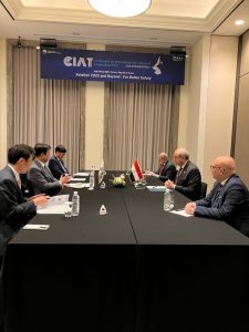 وعلى هامش المؤتمر، عقد الدكتور سامح الحفني وزير الطيران المدني اجتماعًا ثنائيًا مع نظيره الكورى السيد بارك سانغ-وو، وزير الأراضي والبنية التحتية والنقل بجمهورية كوريا، حيث ناقش الجانبان آفاق التعاون في مجالات النقل الجوي، مع التركيز على تطوير المطارات الذكية وتعزيز الاستثمارات المستدامة في قطاع الطيران.