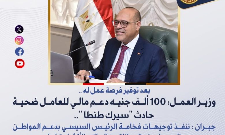 وزير العمل: 100 ألف جنيه دعم مالى للعامل ضحية حادث “سيرك طنطا “