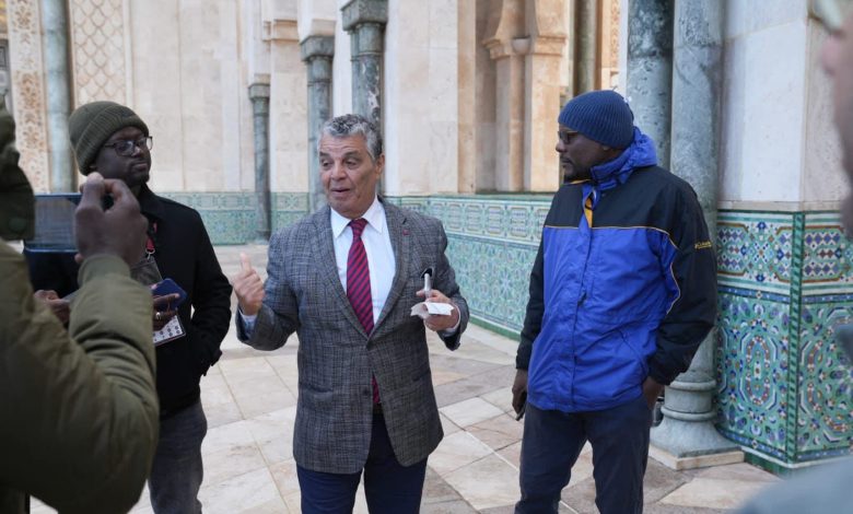 وقام الوفد الإعلامي بزيارة مسجد الحسن الثاني بمدينة الدار البيضاء، للتعرف على هذا الصرح المعماري الكبير والمعلم الحضاري، الذي يمثل رمزا للفن الإسلامي والمغربي، ويضم مرافق ثقافية هامة مثل المكتبة الوسائطية والمتحف.
