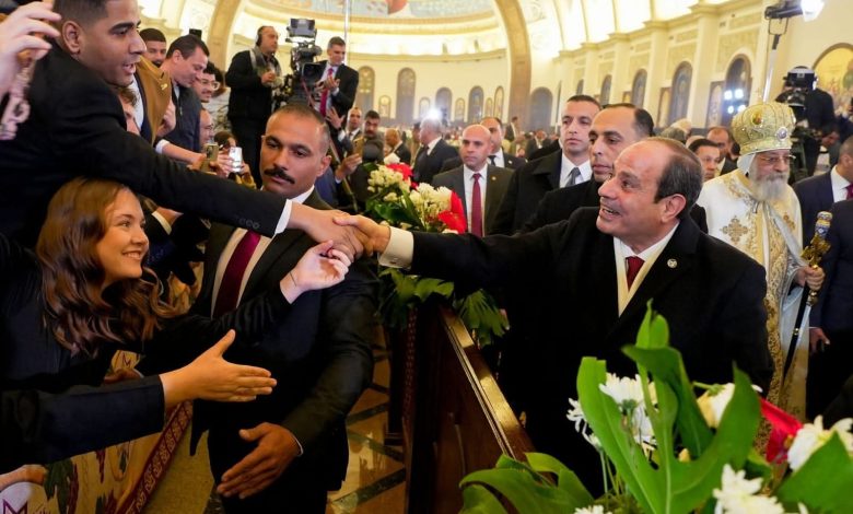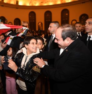 استقبل الإخوة الأقباط، السيد الرئيس عبدالفتاح السيسي، لدى دخوله الساحة الأمامية المخصصة للمصلين داخل كاتدرائية “ميلاد المسيح” في العاصمة الجديدة؛ للتهنئة بعيد الميلاد المجيد، بالتصفيق الحار والزغاريد للتعبير عن الترحيب بسيادته.