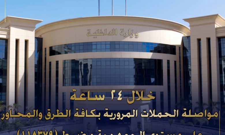 واصلت وزارة الداخلية حملاتها المرورية بكافة الطرق والمحـاور على مستوى الجمهورية .. وتمكنت خلال 24 ساعة من ضبط (118379) مخالفة مرورية متنوعة أبرزها :