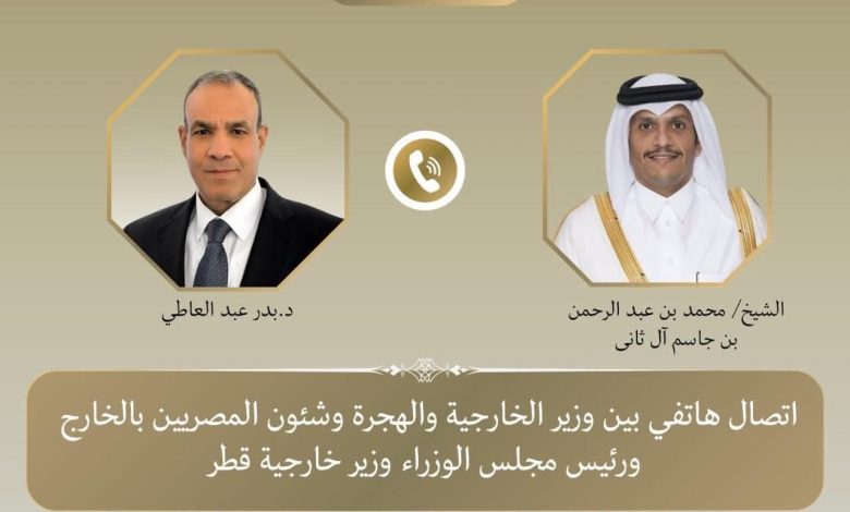 بحث د. بدر عبد العاطي وزير الخارجية والهجرة والشيخ محمد بن عبدالرحمن آل ثاني رئيس الوزراء وزير خارجية دولة قطر الشقيقة تطورات الأوضاع في قطاع غزة، والجهود المصرية-القطرية للتوصل لوقف إطلاق النار، ووقف الجرائم والانتهاكات الصارخة التي ترتكبها إسرائيل ضد المدنيين الفلسطينيين، وانهاء المعاناة الإنسانية في قطاع غزة.