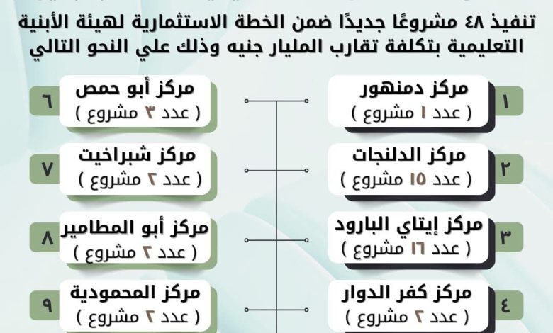 ٤٨ مشروعاً  تعليمياً جديداً فى البحيرة بتكلفة مليار جنيه