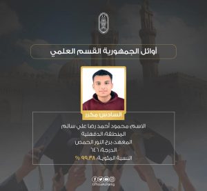 ٦٥.٠١% النجاح بالثانوية الأزهرية علمى..و٤٥.٥٠% أدبى..والأوائل بالأسماء والصور